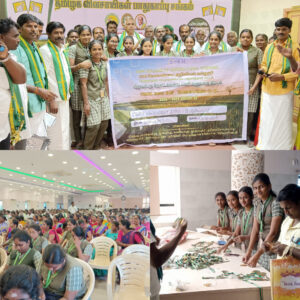 SRM : தேசிய விவசாயிகள் தினத்தை முன்னிட்டு தமிழக விவசாயிகள் பாதுகாப்பு சங்கத்தின் சார்பில் நடந்த பொதுக்கூட்டம் மற்றும் விருது வழங்கும் நிகழ்ச்சியில் பங்கேற்ற எஸ். ஆர். எம் வேளாண் கல்லூரி மாணவிகள்.